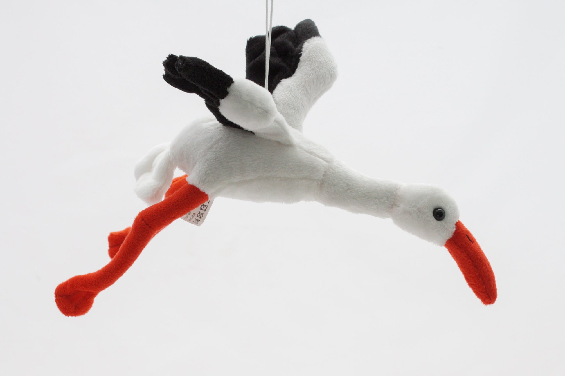 Wunderschöner Plüsch-Storch mit einem weichen Schnabel aus Stoff und schwarzen Knopfaugen. Der hübsche Wildvogel ist aus hochwertigem Polyesterplüsch gefertigt, welches besonders kurzflorig und auffallend kuschlig weich ist. Dieser realistische Plüsch-Storch ist mit einem Aufhänger versehen und kann so auch wunderbar zur Deko genutzt werden.